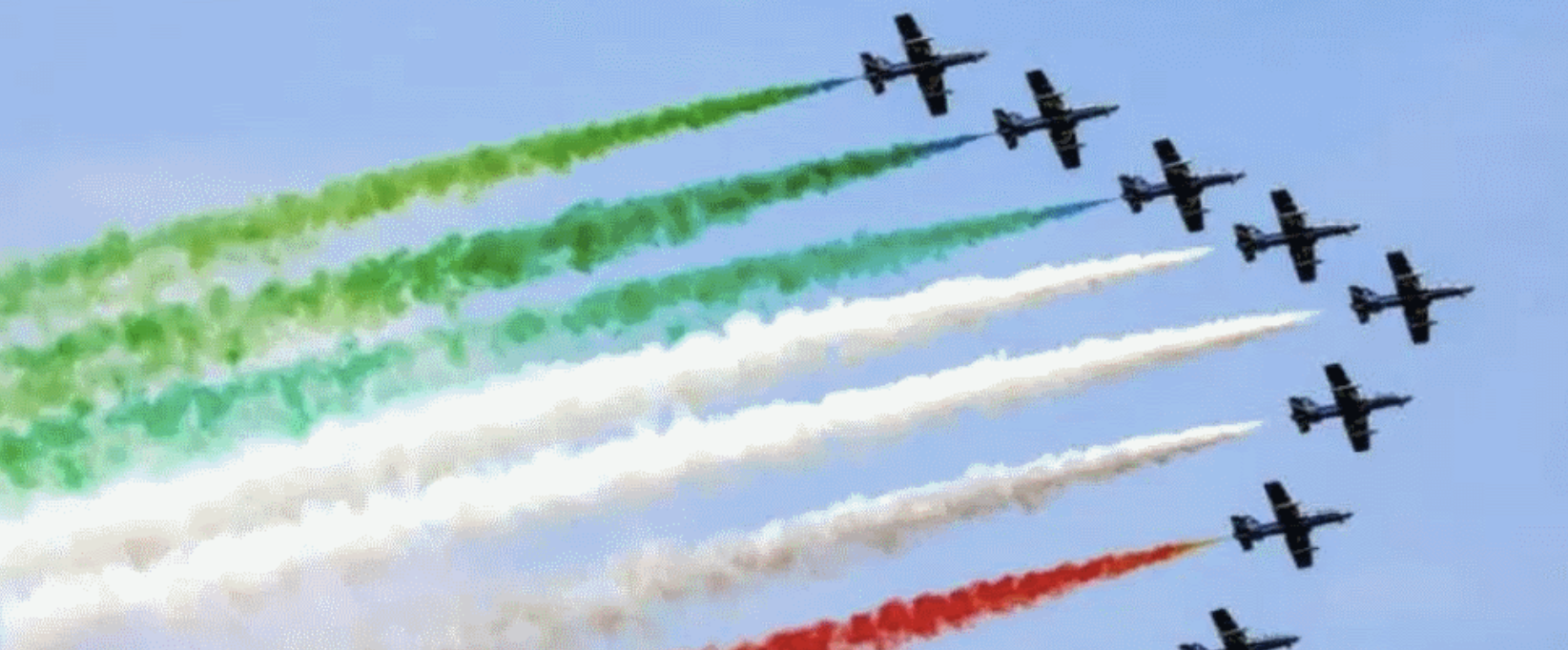 La pattuglia acrobatica nazionale spargerà il tricolore nel cielo di Rimini, mostrando alla folla, con lo sguardo rivolto al cielo, le acrobazie e scenografie che rendono le Frecce Tricolori famose nel mondo.